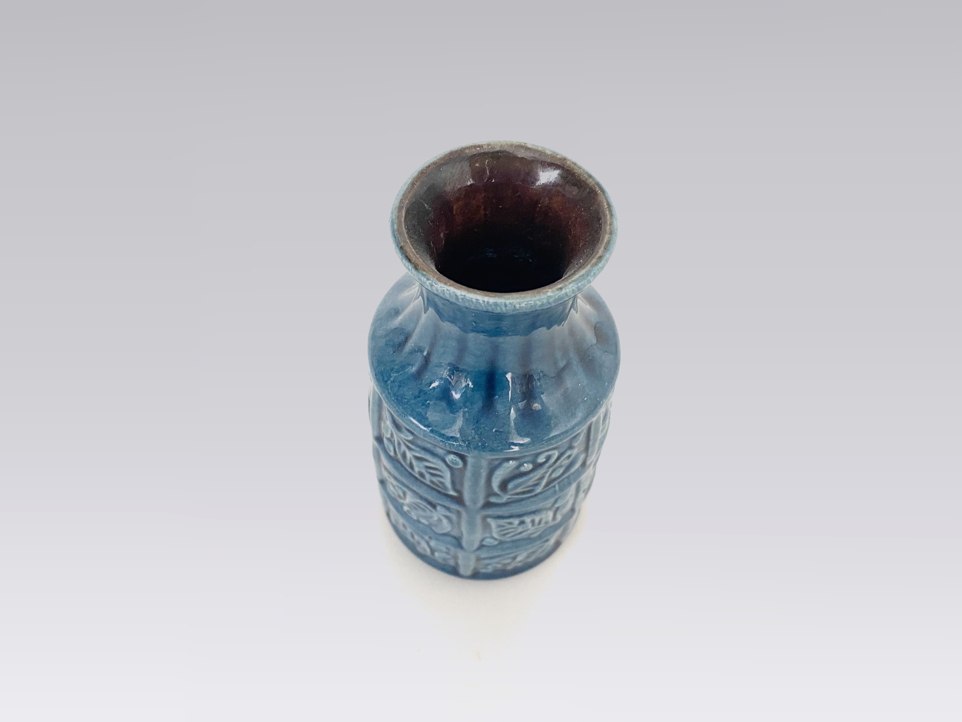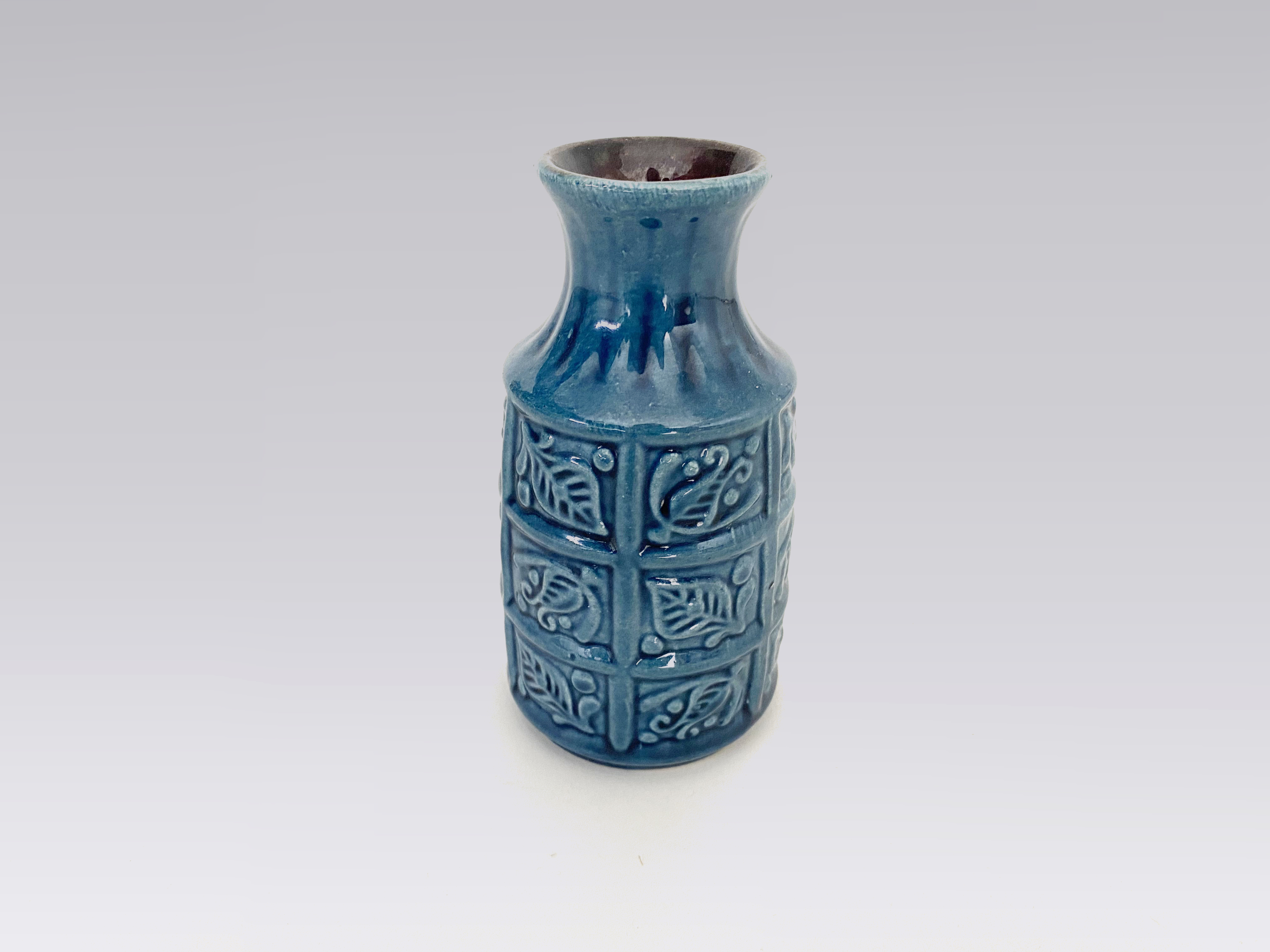 Blue vase from Bay Ceramics550 krMaker:Bay CeramicsYear:1960Country:West GermanyFine little blue vase from Bay Ceramics. Excellent condition.14 cm high, 7 cm in diameterADD TO CART