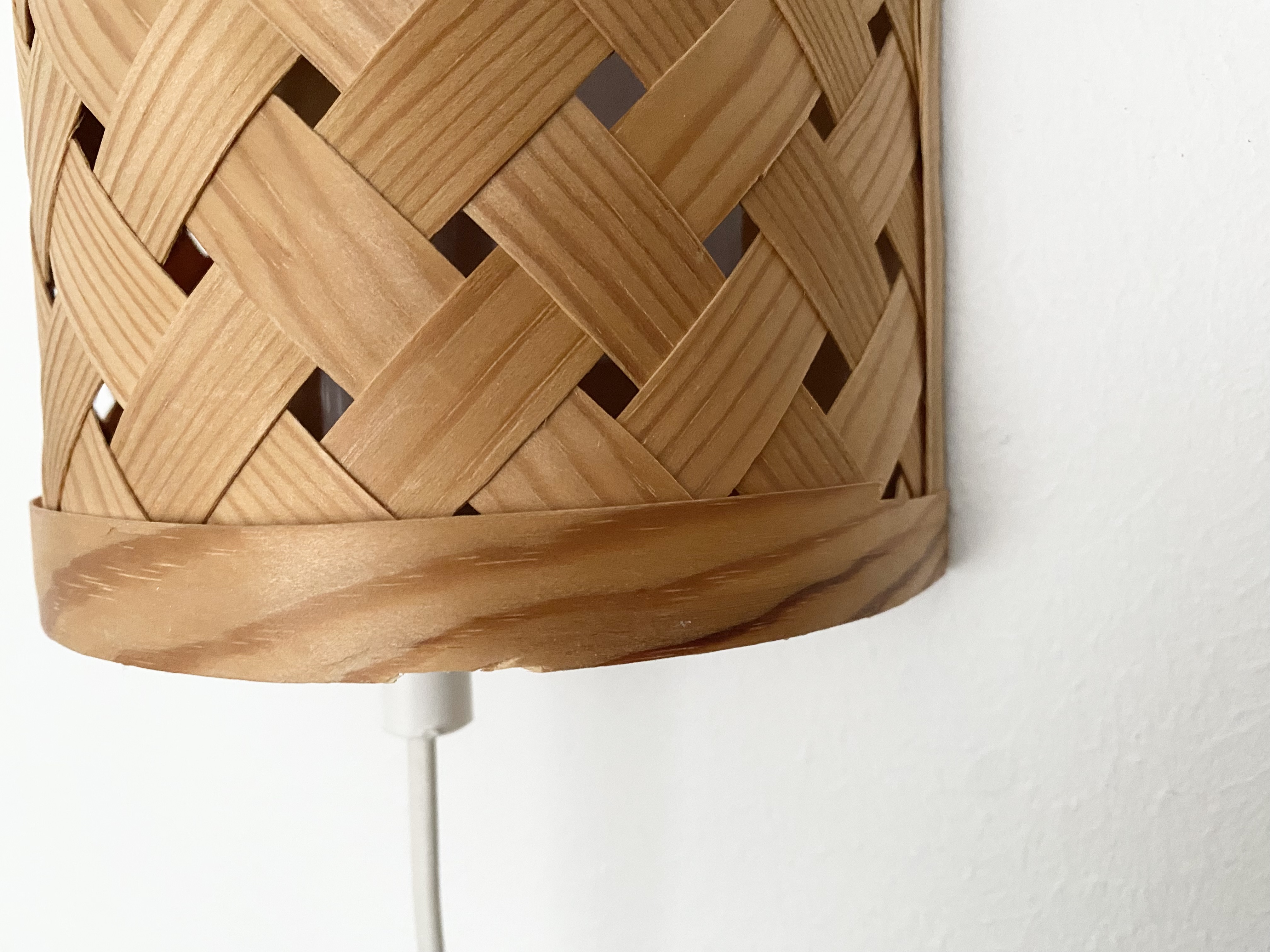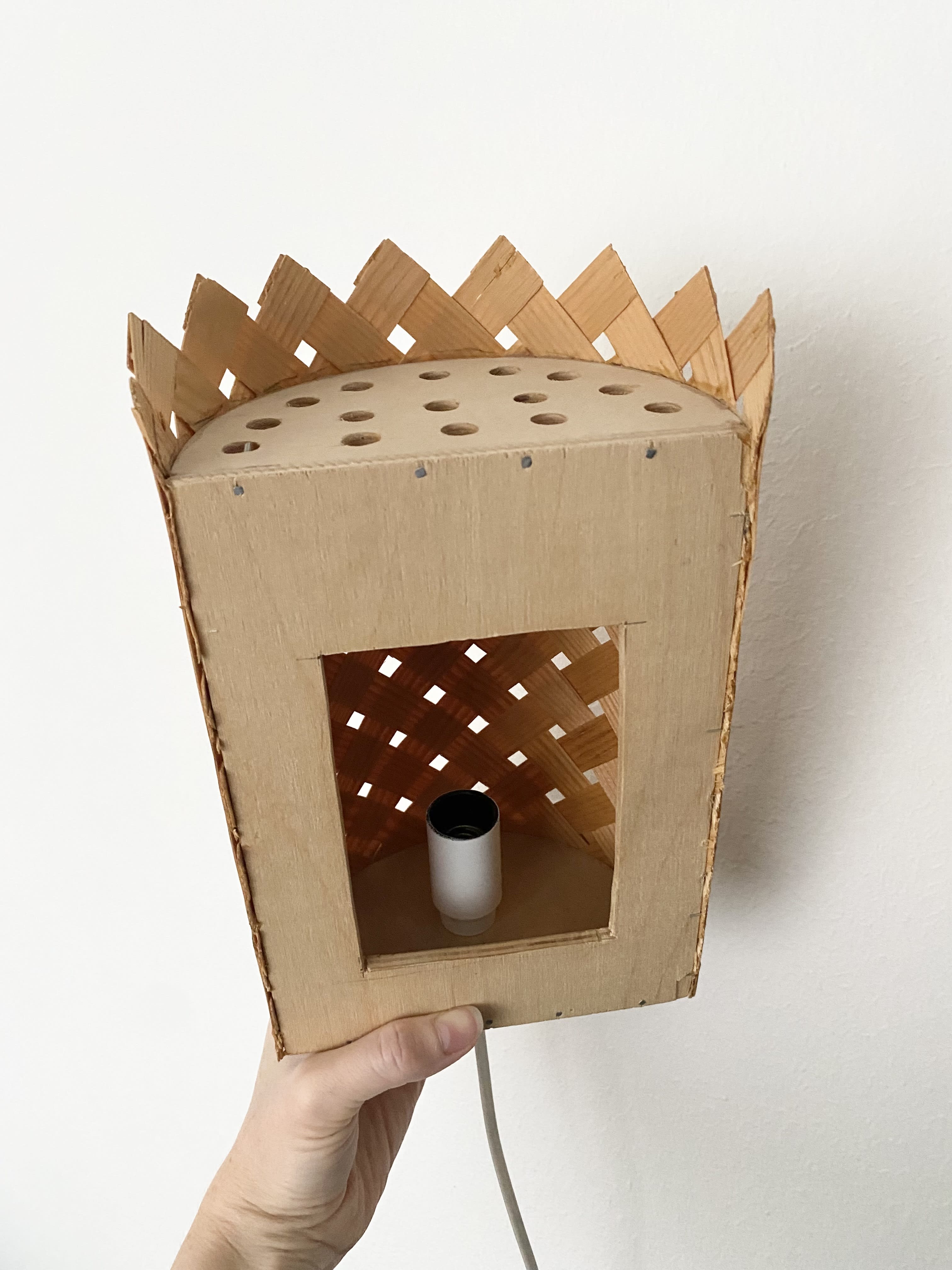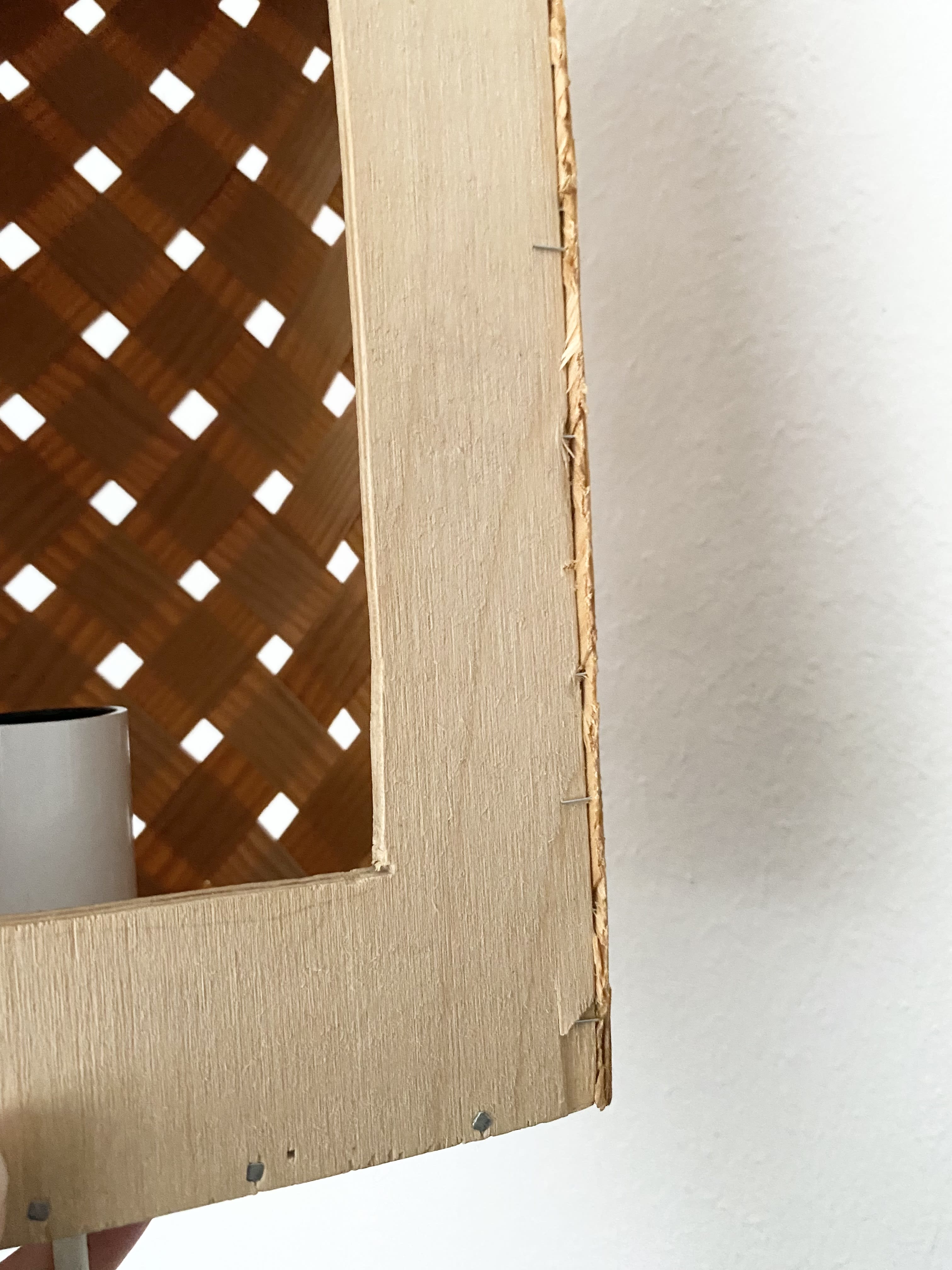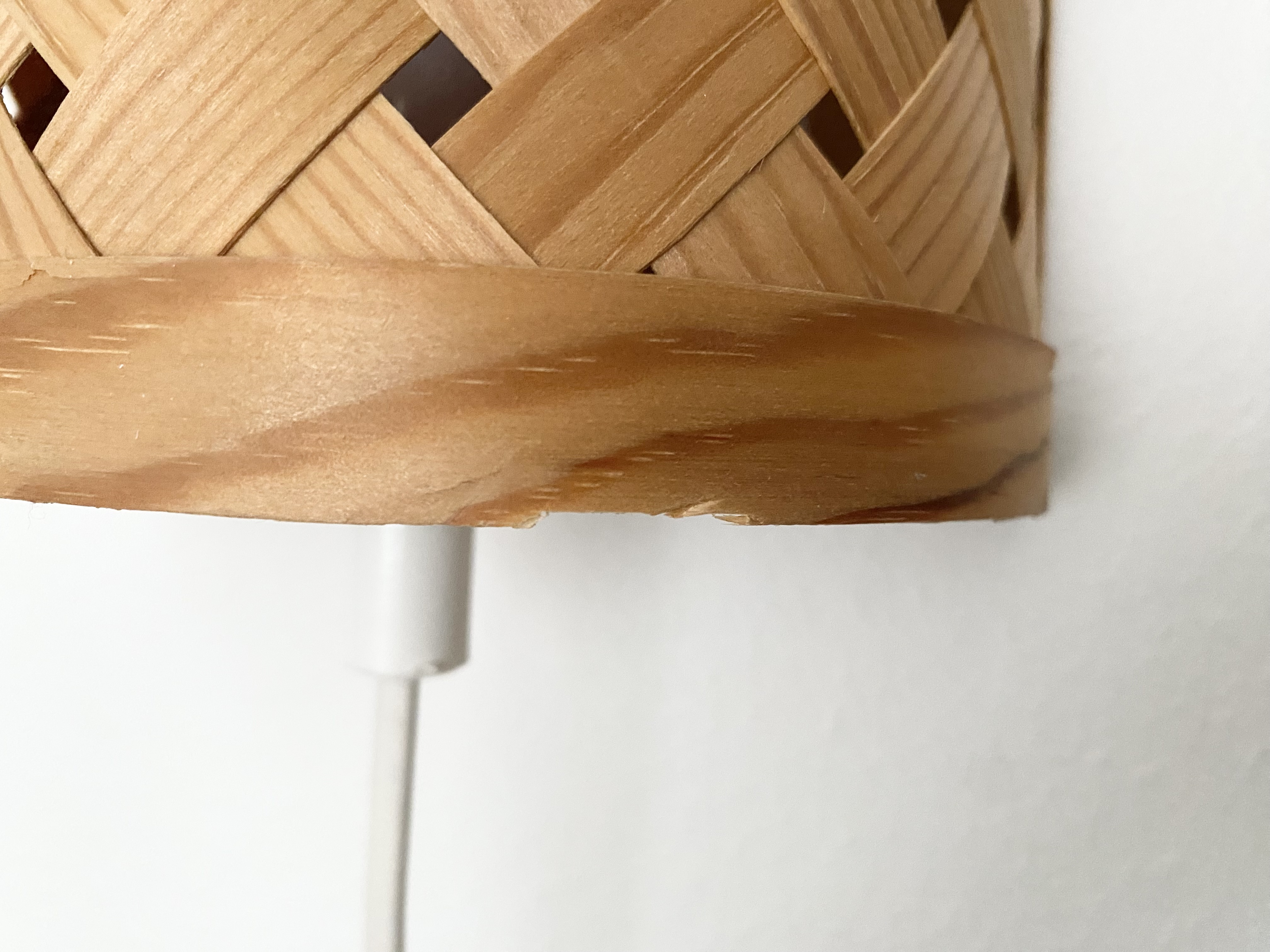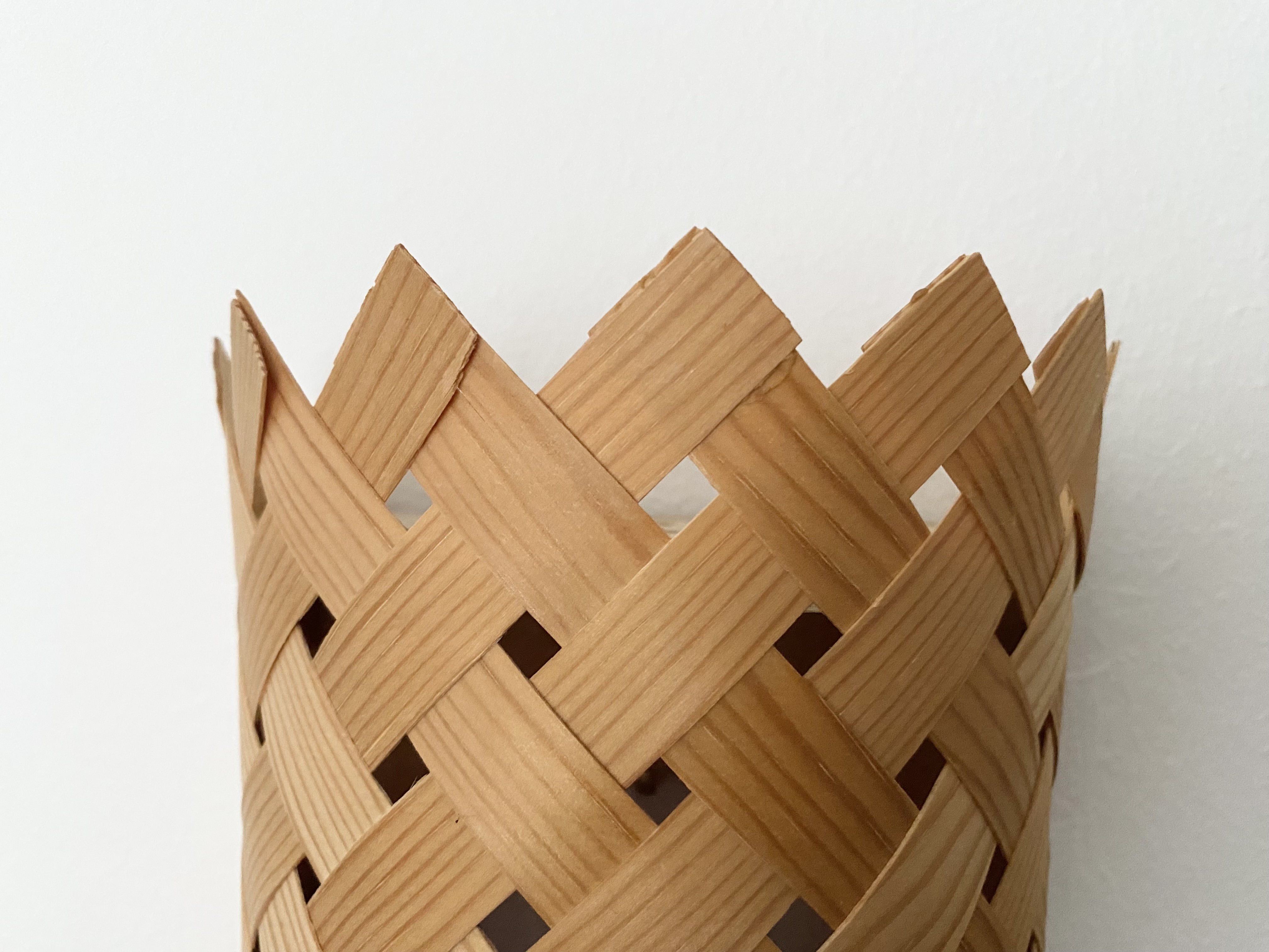 The lamps are handmade and therefor a bit irregular in shape. The measurements are not completely the same in both lamps. The thin wood is quite fragile and there are some wood chips. Look closely at the pictures.
