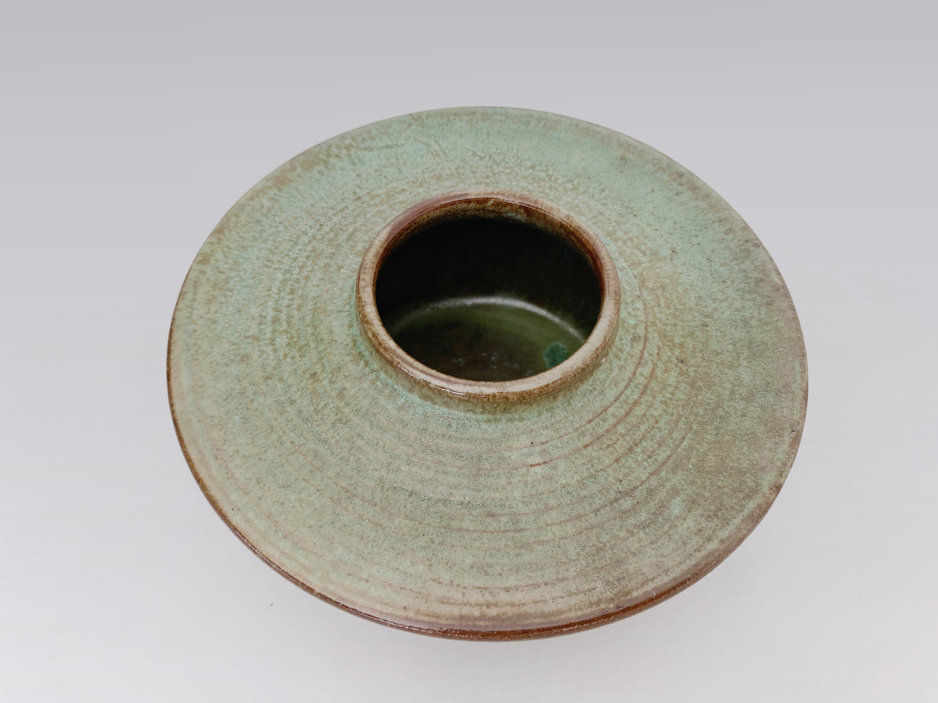 Beautiful ceramic vase from Swedish pottery maker Laholm. It has a matt green/brown speckled glaze. The vase is in a very good condition. At the bottom the glaze has dripped unevenly so there are some places where the clay is showing. These are not chips just uneven glazedrips from production.