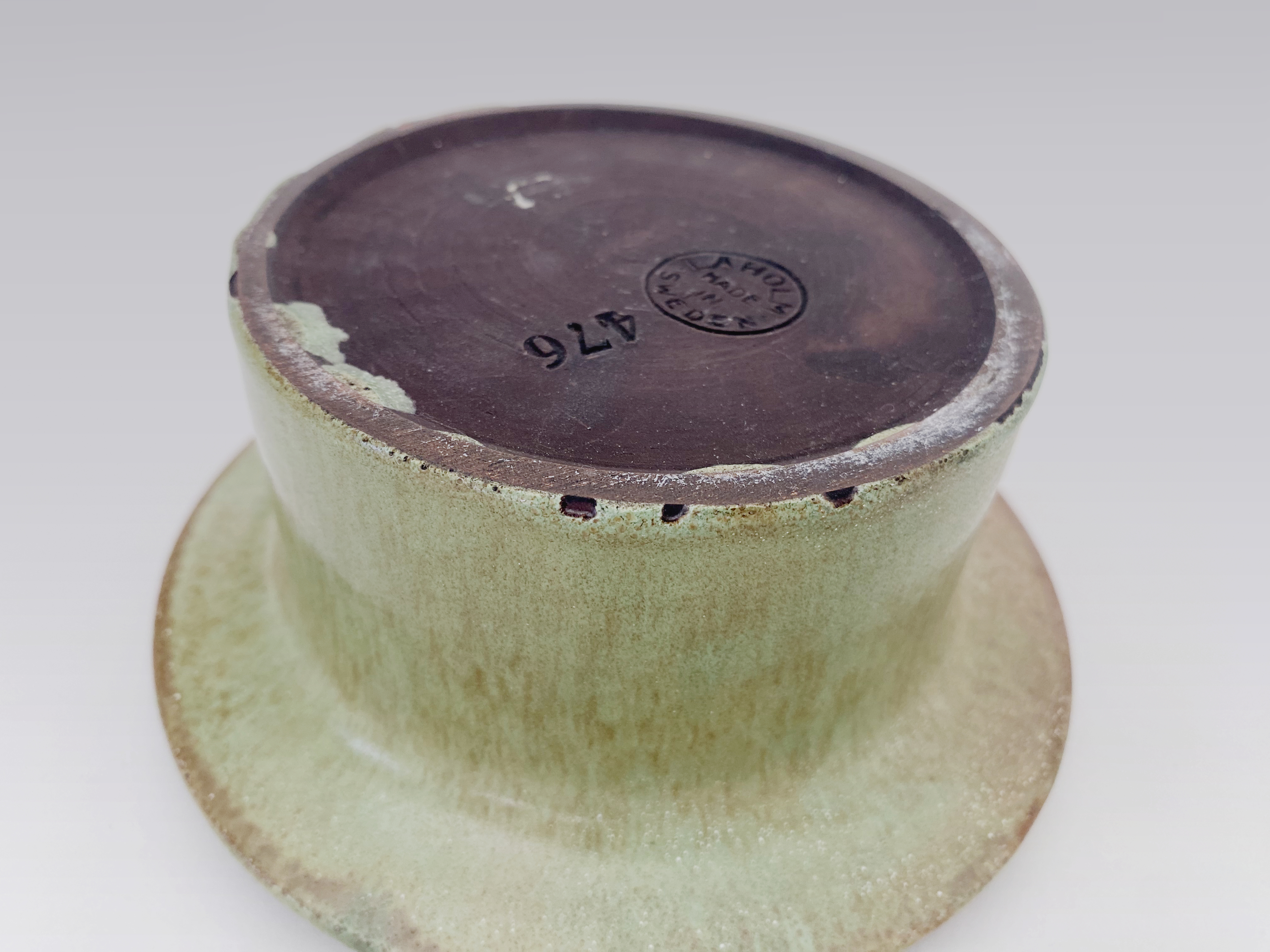 The vase is stamped Laholm, Sweden, 476.