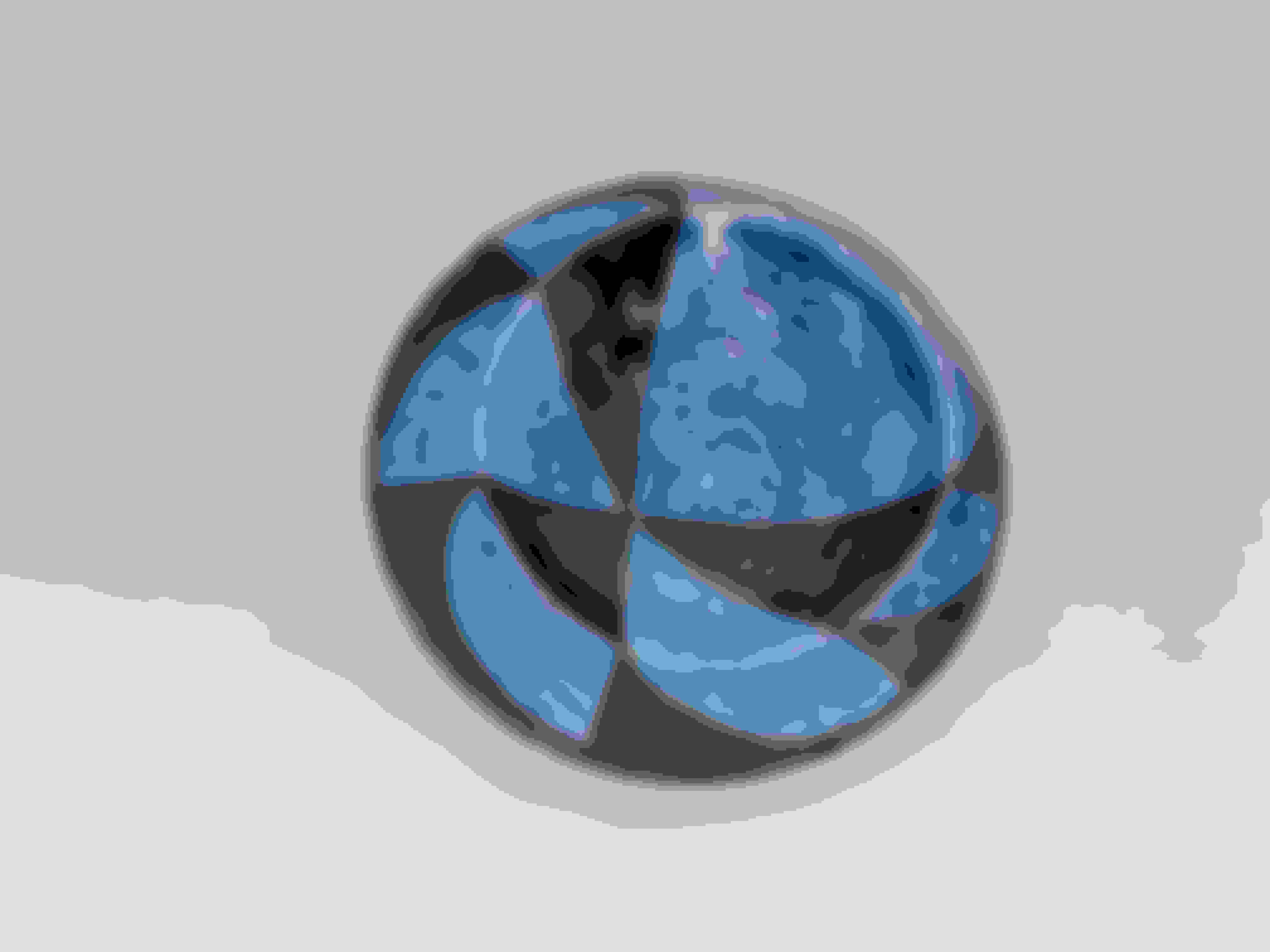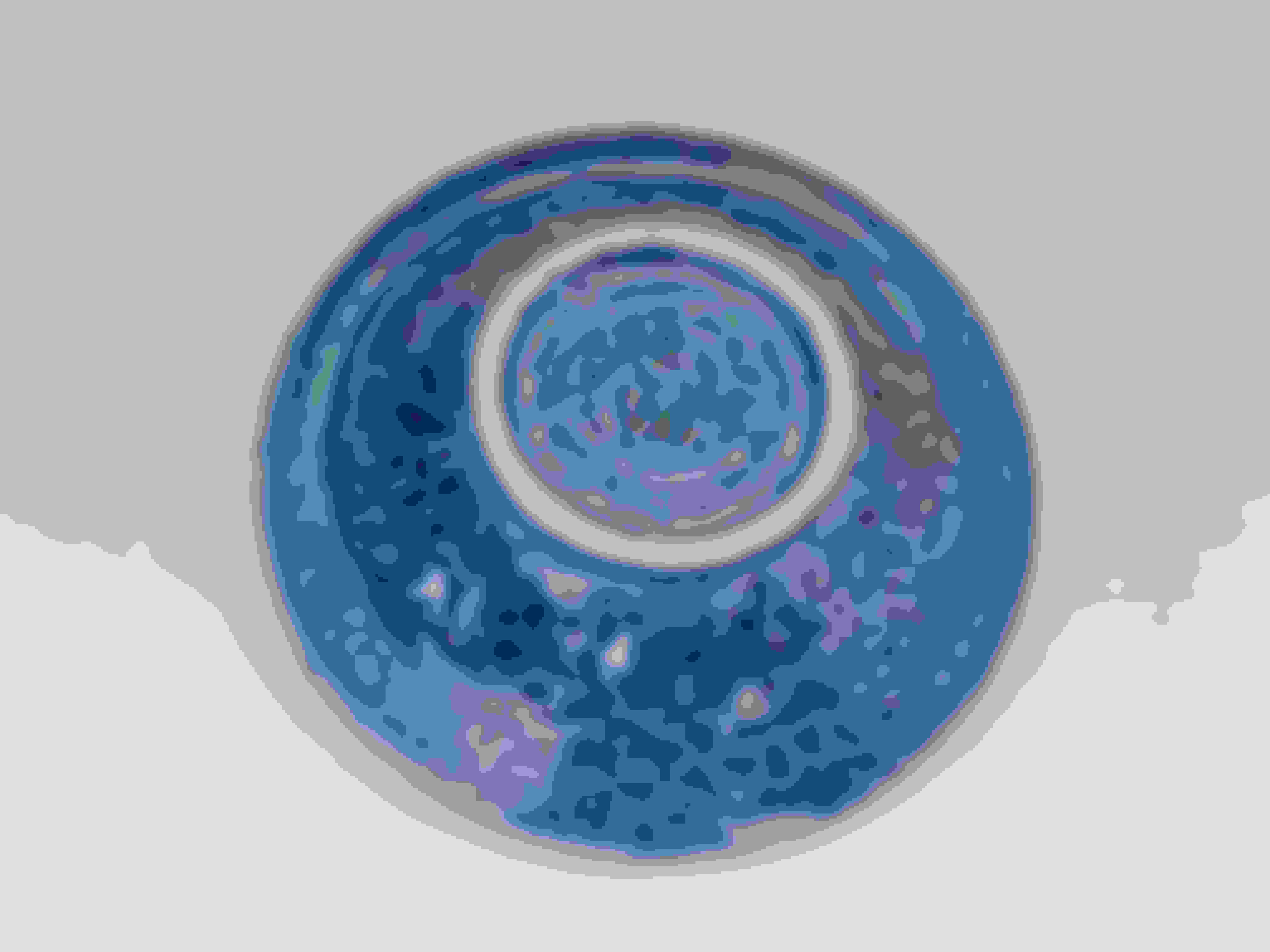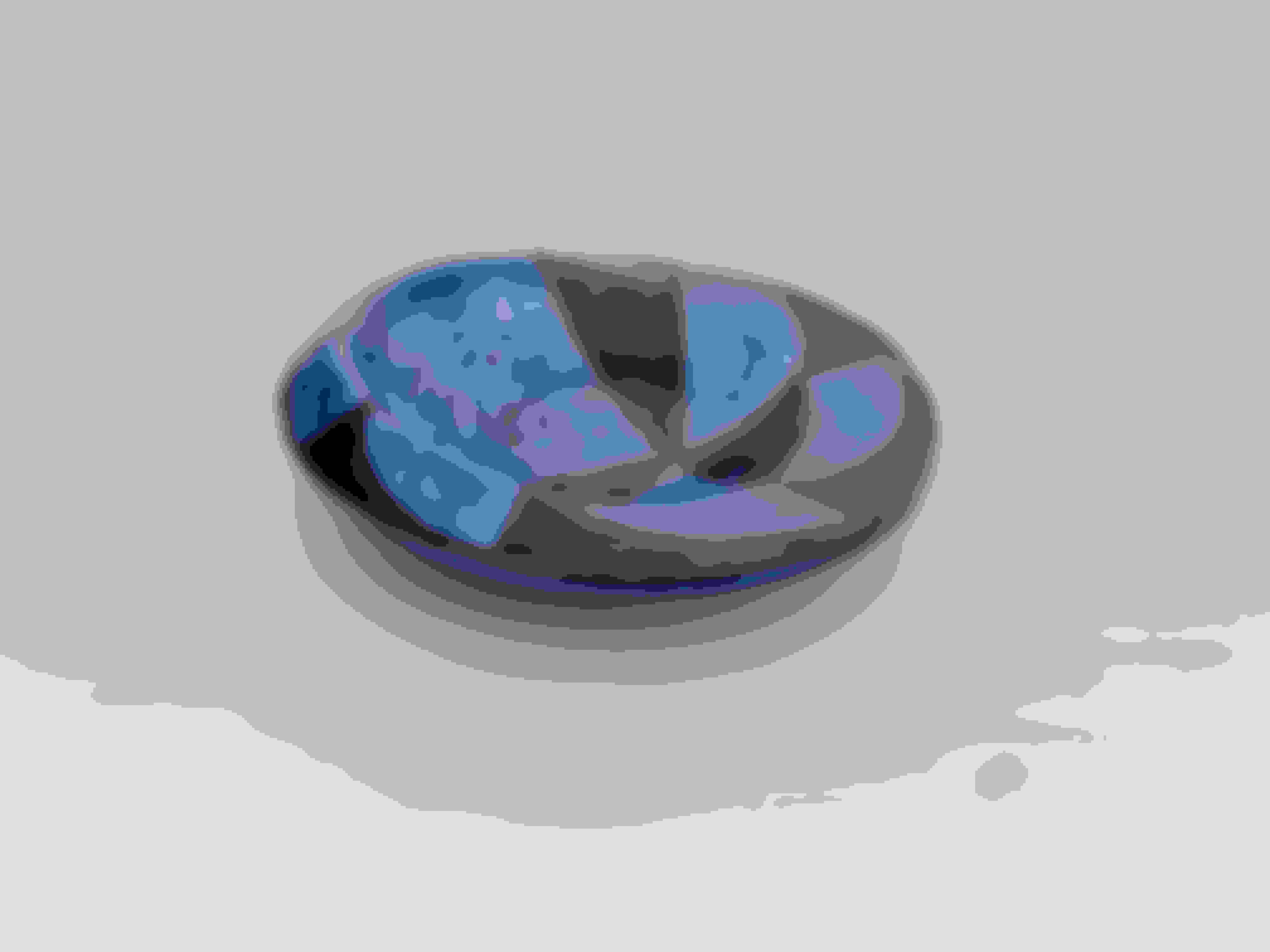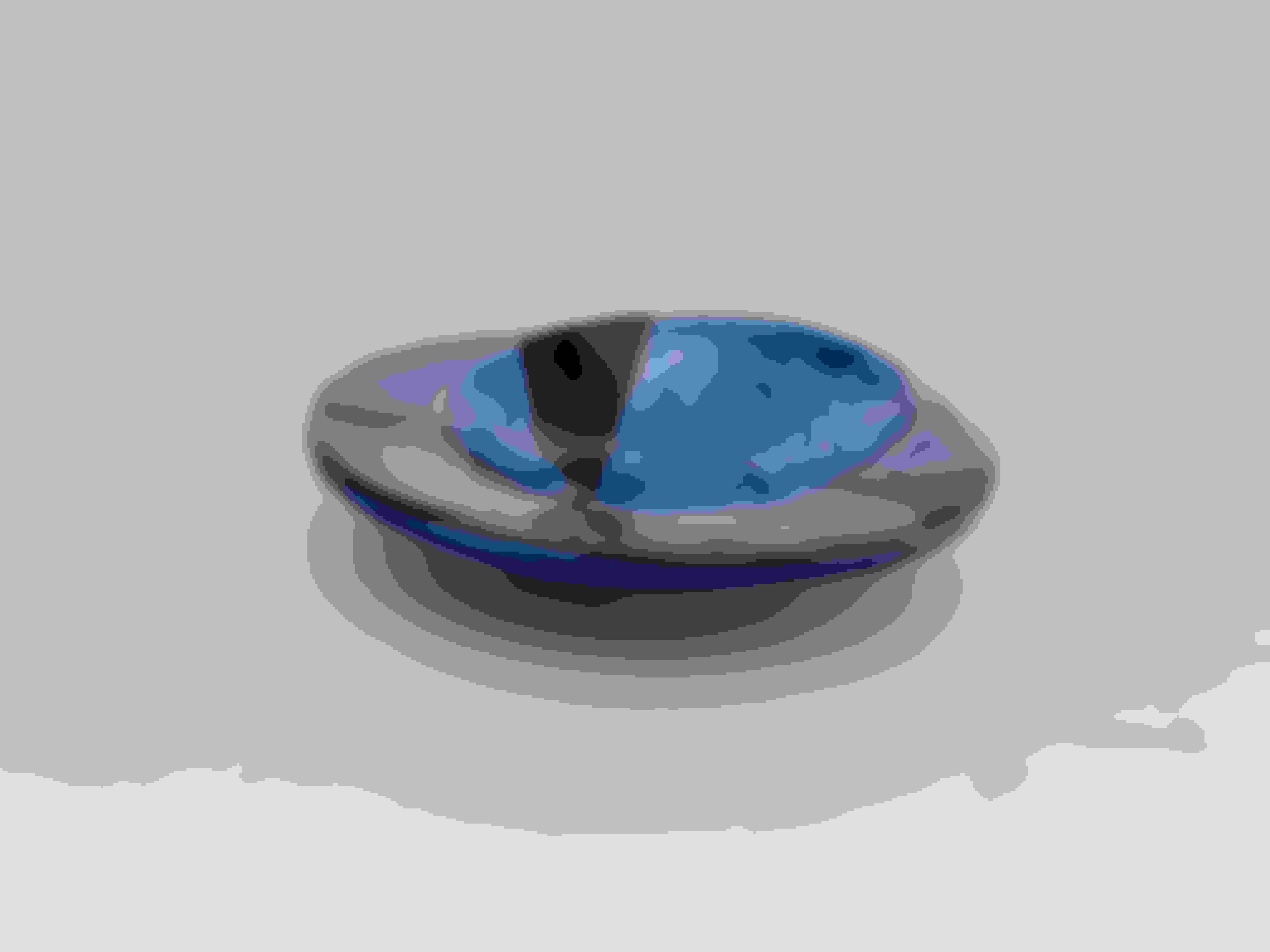 Biomorphic shaped chamotte clay bowl with blue and black geometric pattern. Designed by Vilhelm Bjerke Petersen for Rörstrand in the 50's. Mint condition.